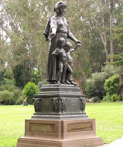 In Golden Gate Park, there is only one statue of a woman. This is the Pioneer Mother, the 1915 work of Charles Grafly for the Pan Pacific Exposition of 1915. California Questers P&R Fund restored the statue and the base.